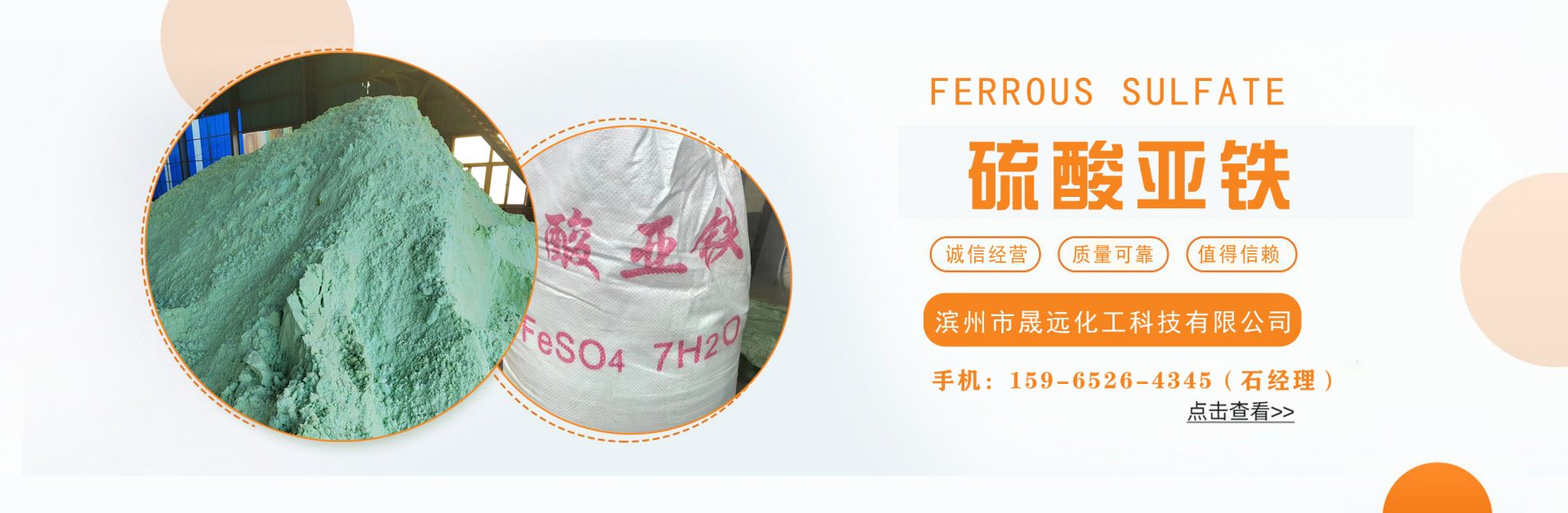 濱州市晟遠化工科技有限公司主營硫酸亞鐵,液體聚合硫酸鐵,七水硫酸鎂,磷酸三納,聚合氯化鋁,食品級碳酸氫銨等化工原料。公司自成立以來,以過硬的產品質量為基礎,以誠信服務為宗旨,客戶遍布全國各地,歡迎來電咨詢或公司考察!...